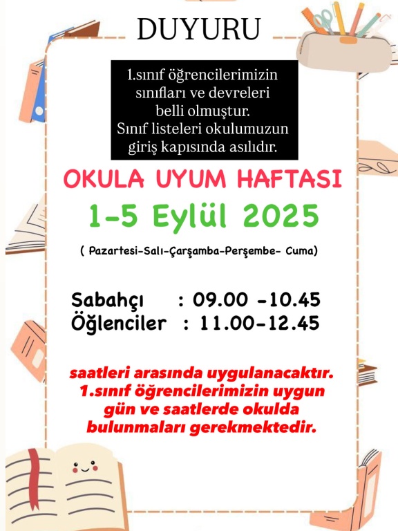 OKULA UYUM HAFTASI DUYURU